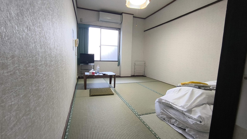 和室です。8畳と広く、バストイレが付いてる和室は